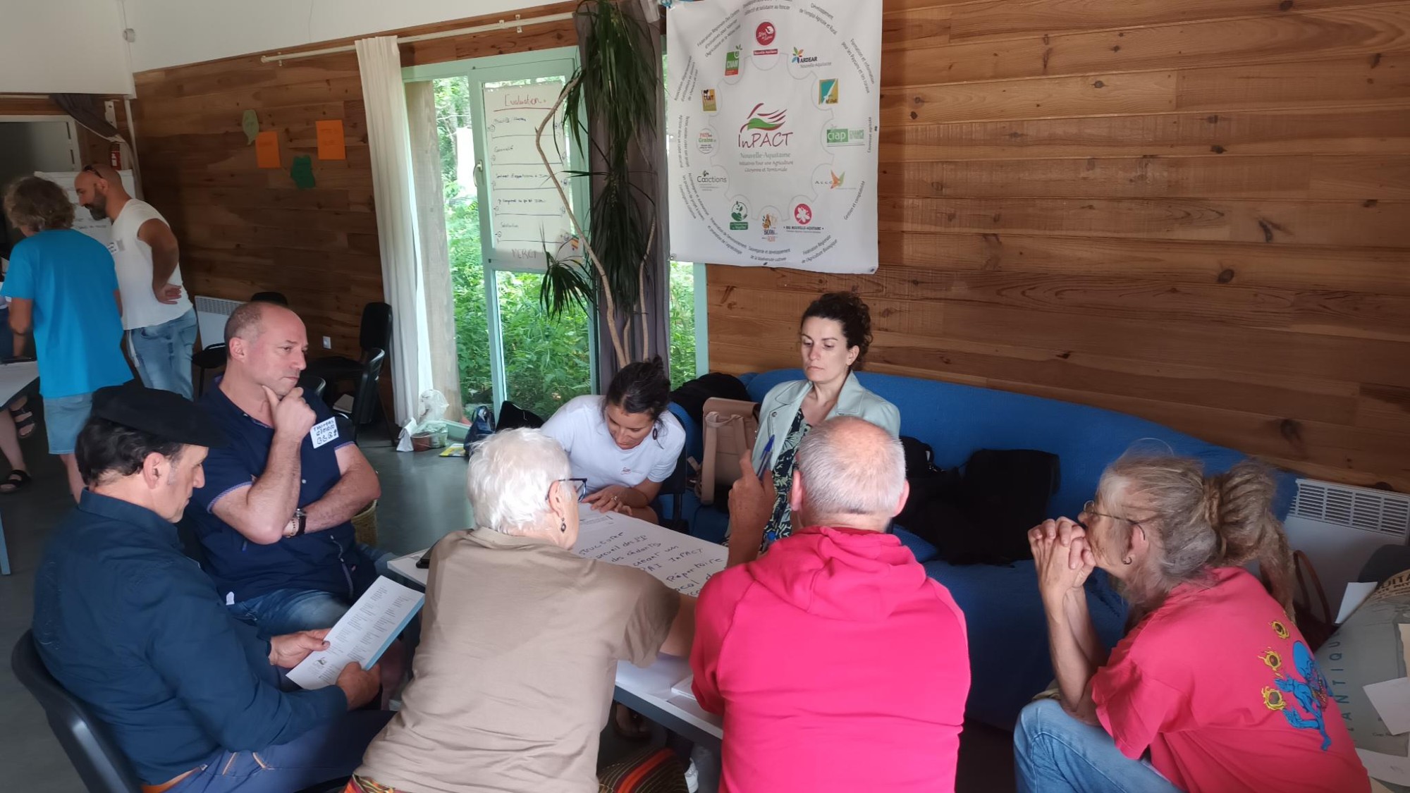 La matinée du jeudi matin était dédiée à l'interconnaissance. Après une présentation du Réseau en Nouvelle Aquitaine, puis de notre brochure climat, Cécile, directrice de Co-actions, membre ayant rejoint le réseau l'an dernier, a présenté sa structure et le travail de reconnaissance des Coopératives d’Activité et d’Emploi Agricoles. Sophie de l'Adear 40 a ensuite présenté le réseau InPACT 40, la dynamique collective naissante dans le département des Landes, et leur souhait de mettre en place un parcours alternatif à l'installation agricole. Cette matinée de découverte, riche en partage et en échanges nous a permis de mieux s'approprier la diversité de notre Réseau.